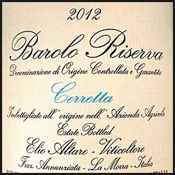 This is the first vintage in which this wine is being released as a Riserva. The 2012 Barolo Riserva Cerretta shows the depth, bounty and power. Let this one decant for sometime, or let sleep in a cool cellar for a really long time. |